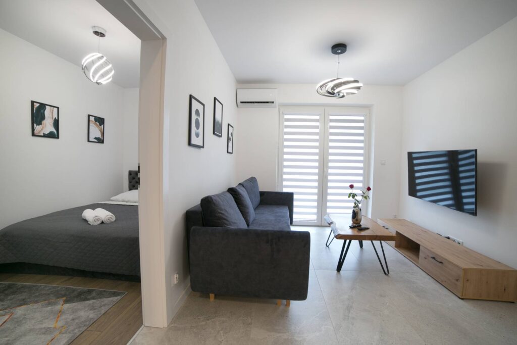 Apartament został stworzony dla Gości ceniących wygodę i funkcjonalność. Jest idealnym miejscem na pobyt biznesowy, turystyczny czy towarzyski.